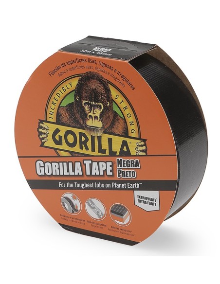 La cinta americana extrafuerte negra Gorilla de 32 m x 48 mm es la herramienta definitiva para reparaciones y fijaciones duraderas. Su adhesivo potente y estructura reforzada con malla garantizan resistencia y flexibilidad, permitiendo su uso sobre metal, madera, plástico, ladrillo, piedra y otras superficies.