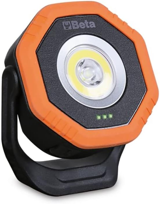 Funciona con una batería recargable de iones de litio de 3,7V y 2600 mAh, ofreciendo una autonomía de entre 3 y 9 horas en la luz principal y hasta 4,5 horas con la luz spot. Puede recargarse mediante cable USB-C o mediante la base de carga inalámbrica Beta 1839BRW, ofreciendo máxima comodidad en el taller.